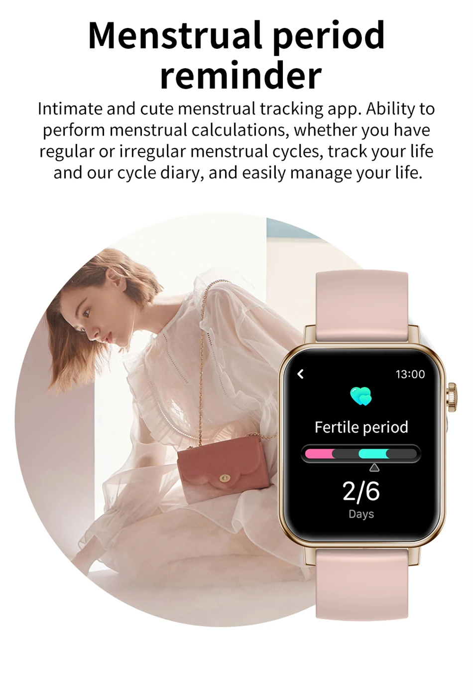 Women 1.69‘’ Full Touch Screen Heart Rate Blood Pressure Smartwatch